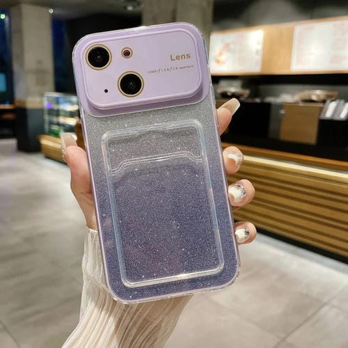 Estuche para Teléfono iPhone 14 Plus Brillo Degradado Ventana Grande Ranura para Tarjeta (Púrpura Claro)
