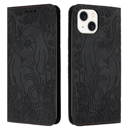 Funda para Teléfono iPhone 14 Plus Cuero Relieve Elefante Retro (Negro)