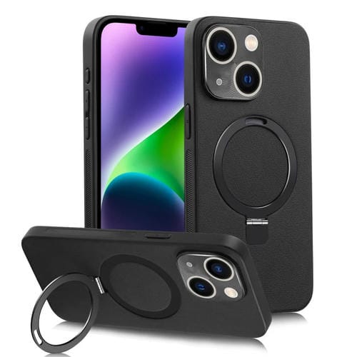 Holder para iPhone 14 Plus Magsafe Rotation PC + Funda de Cuero para Teléfono (Negro)