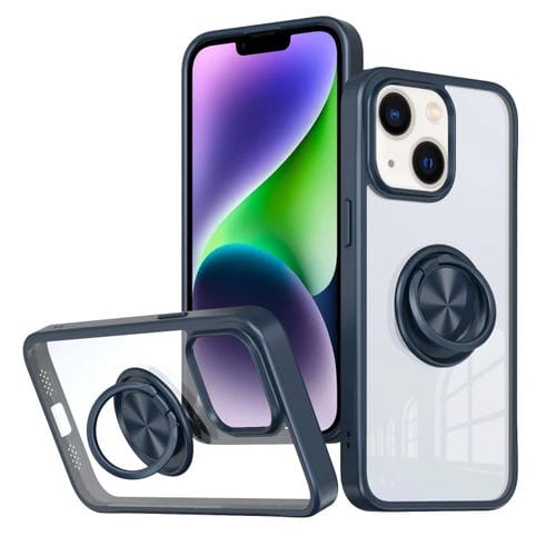 Funda para teléfono iPhone 14 Plus Ring Holder PC Hybrid TPU (Azul)