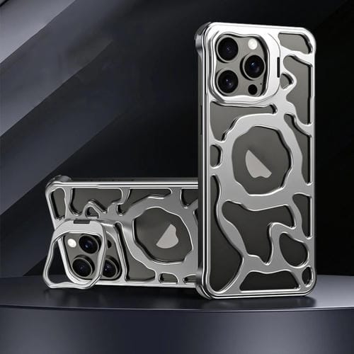 For iPhone 14 Pro Auspicious Cloud Series MagSafe Metal Phone Case with Stand (Silver)