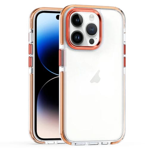 Funda para Teléfono iPhone 14 Pro PC Transparente TPU Dos Colores (Naranja)