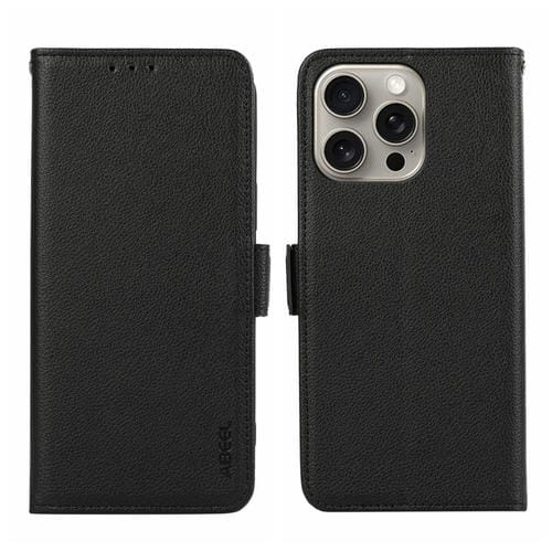 Funda para Teléfono Abeel iPhone 14 Pro Max Cuero Patrón Litchi Magnético Lateral (Negro)