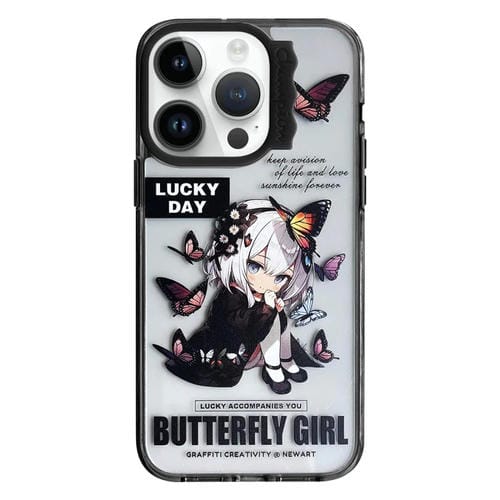 Funda para iPhone 14 Pro Max con Patrón Creativo de Círculo de Ondas Coloridas (Niña de Flores de Mariposa)