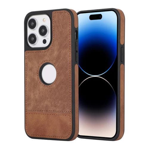 Funda para iPhone 14 Pro Max Empalme Costura Caja de Teléfono de PU con Recorte (Marrón)