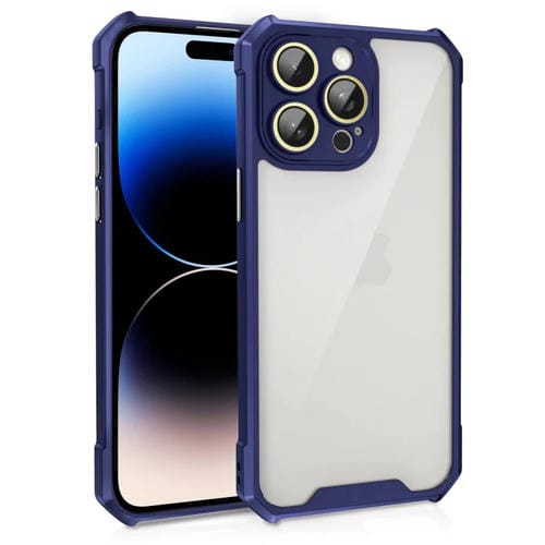 Estuche Acrílico iPhone 14 Pro Max a Prueba de Golpes con Película de Vidrio para Lentes (Azul)