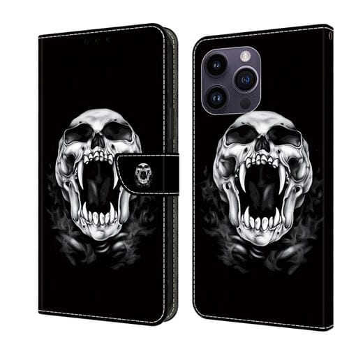 Estuche para Teléfono iPhone 14 Pro Max Cuero Pintado con Cristales Calavera