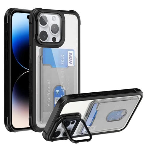 Estuche para Teléfono iPhone 14 Pro Max TPU Híbrido Acrílico con Soporte para Tarjeta (Negro)