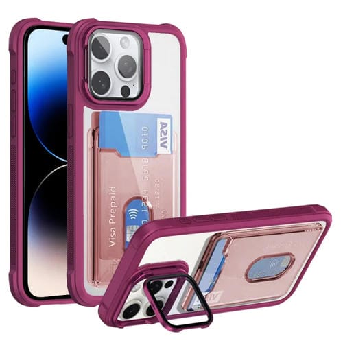 For iPhone 14 Pro Max Acrylic Hybrid TPU Phone Case with Card Holder (Red)