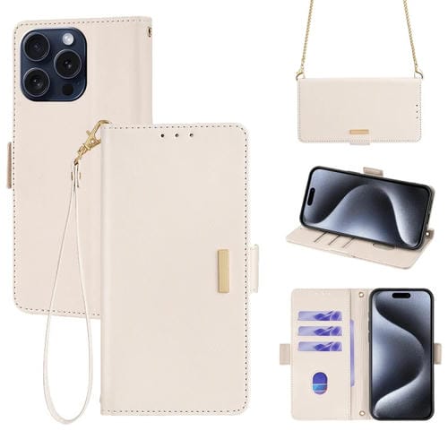 Funda para Teléfono iPhone 14 Pro Max Cuero con Cadena Cruzada (Blanco)