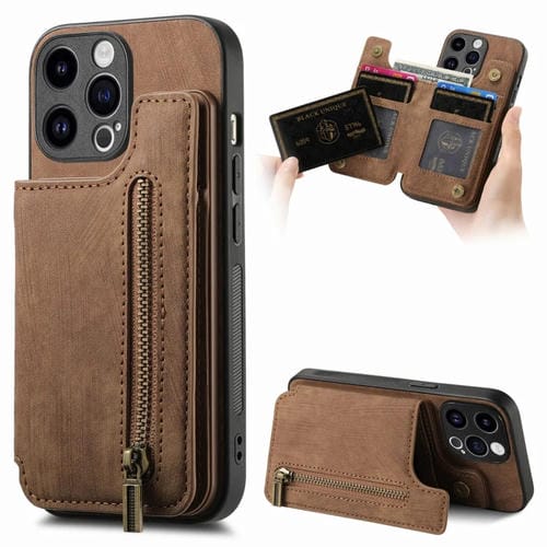 Funda para iPhone 14 Pro Max Cuero Retro con Cremallera y Billetera (Marrón)