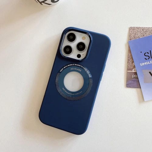 Funda Magnética de Silicona para iPhone 14 Pro Max con Marco de Metal (Azul Oscuro)