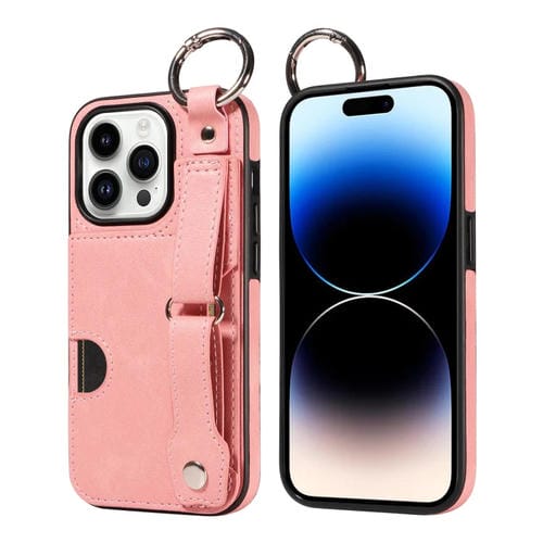 Funda para Teléfono iPhone 14 Pro Max con Anillo y Ranura para Tarjeta Textura de Pantorrilla (Rosa)
