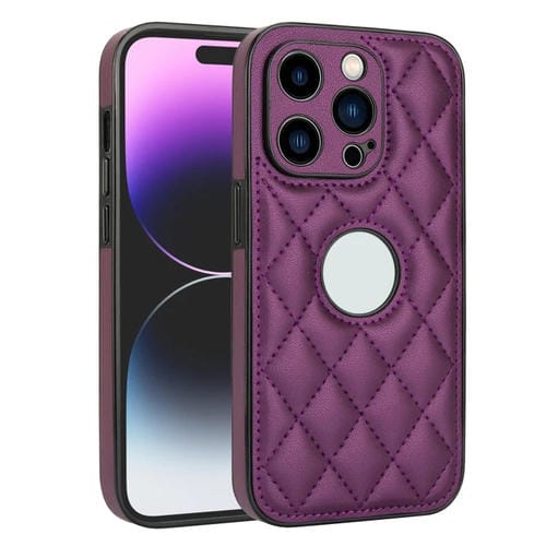 Funda para Teléfono iPhone 14 Pro Max Contraportada de Cuero Rómbico (Púrpura Oscuro)