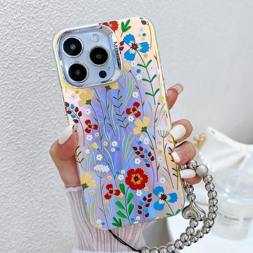 Funda para Teléfono iPhone 14 Pro Max con Flor Láser Galvanizada y Correa para la Muñeca (Flor Ah6)