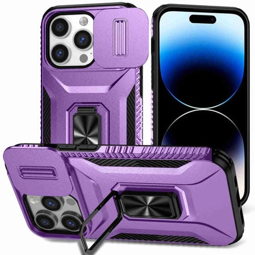 Funda para Teléfono iPhone 14 Pro Max con Soporte Deslizante para Escudo de Levas (Púrpura)