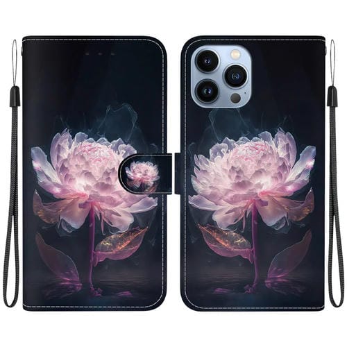 Funda para Teléfono Apple iPhone 14 Pro Max Cuero con Dibujo Coloreado Textura de Cristal (Peonía Púrpura)