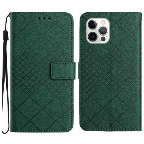 Funda para Teléfono iPhone 14 Pro Max Cuero Textura Rejilla Rómbica (Verde)