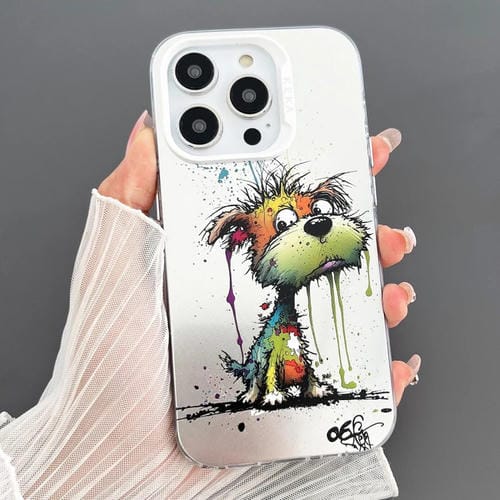 Funda para Teléfono iPhone 14 Pro Max Imd Animal Graffiti TPU + PC Doble Cara (Perro Naranja Verde)