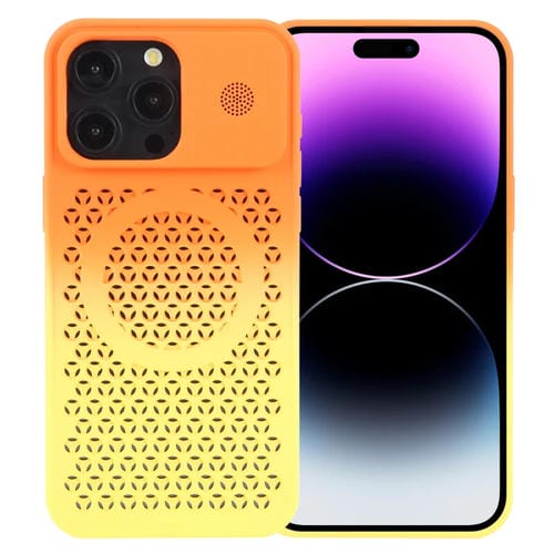 Estuche para teléfono iPhone 14 Pro Max Honeycomb Cooling Aromaterapia Magsafe (Naranja Amarillo)