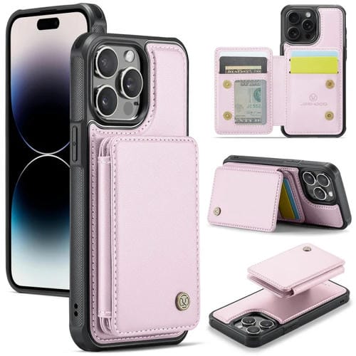 Estuche para teléfono Jeehood J05 para iPhone 14 Pro Max Cuero Rfid Magnético Empresarial (Rosa)