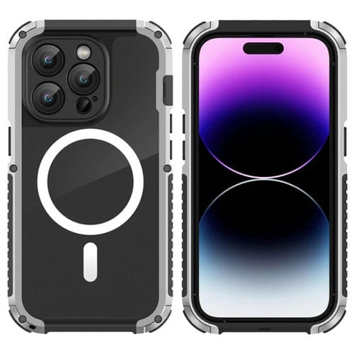 Caja de Teléfono para iPhone 14 Pro Max Magsafe Metal a Prueba de Golpes (Plata)