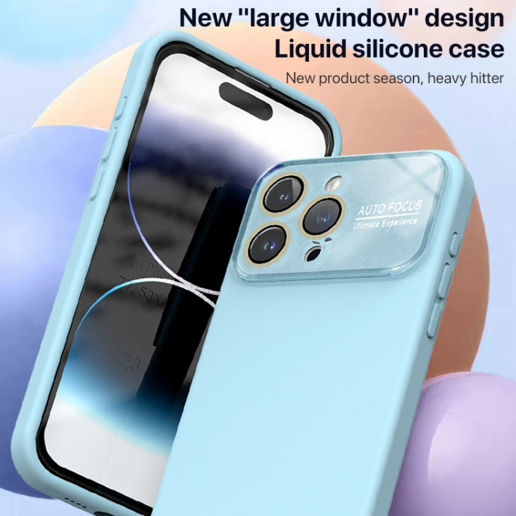 Película de Lente Acrílica + Funda Silicona Líquida para iPhone 14 Pro Max Cobertura Total (Azul Cielo)