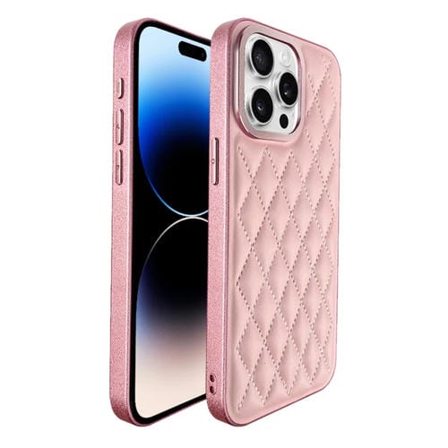 Estuche para teléfono iPhone 14 Pro Max Plaid Series 9D Galvanizado (Rosa)