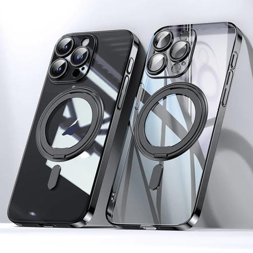 Funda para Teléfono iPhone 14 Pro Plating PC 360 Ring Holder Magsafe (Negro Transparente)