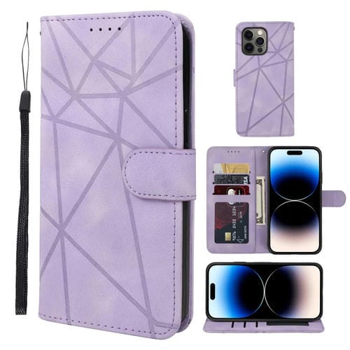 Funda para Teléfono iPhone 14 Pro Skin Feel Cuero Líneas Geométricas (Púrpura)