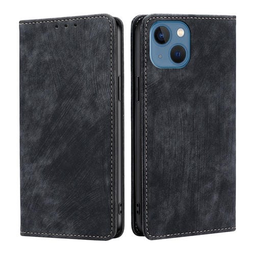 Funda de Cuero Magnético para iPhone 14 con Rfid y Cepillo Antirrobo (Negro)