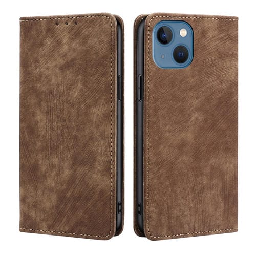 Funda de teléfono iPhone 14 RFID Cuero Magnética con Cepillo Antirrobo (Marrón)