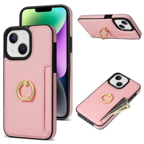 Funda Trasera para iPhone 14 Ring Card Litchi Cuero (Rosa)