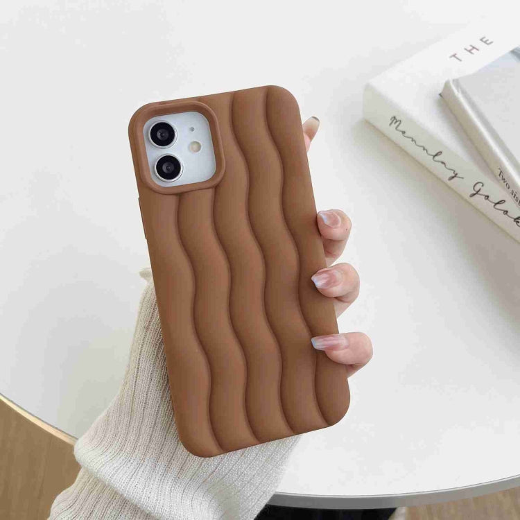 Funda para iPhone 14 Skin Feel 3D Water Wave Texture Phone Case (Marrón)