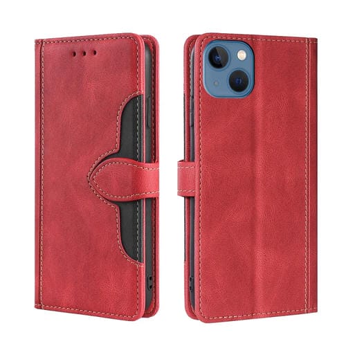 Funda de Cuero para iPhone 14 Skin Feel con Hebilla Magnética (Rojo)