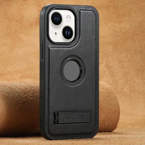Funda Trasera Suteni G2 para iPhone 14 Magsafe Oil Wax Cuero con Soporte (Negro)