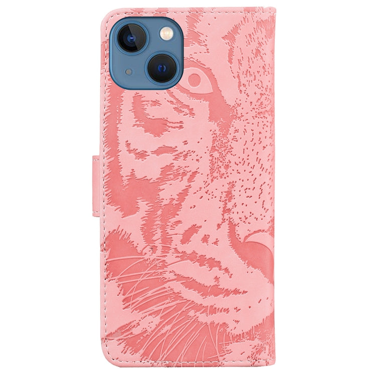 Funda de Cuero para Teléfono iPhone 14 Tiger Embossing Pattern (Rosa)
