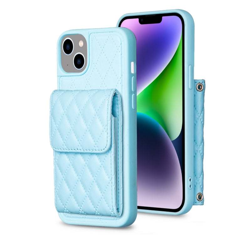 Funda para iPhone 14 Vertical Wallet Rhombic Leather Phone Case (Azul)