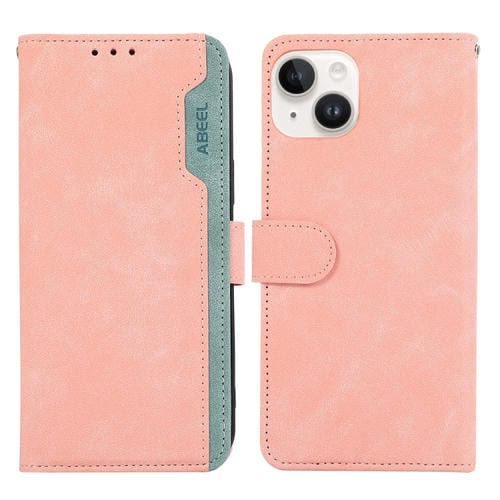 Estuche para iPhone 15 Abeel Color Block Magnético de Cuero Rfid (Rosa-Cian)