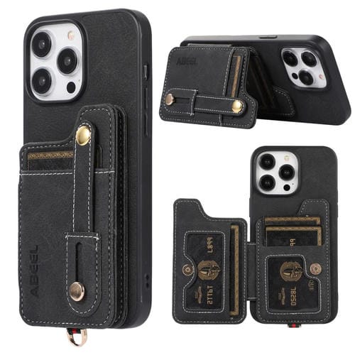 For iPhone 15 ABEEL Litchi Texture Card Bag PU Phone Case(Black)