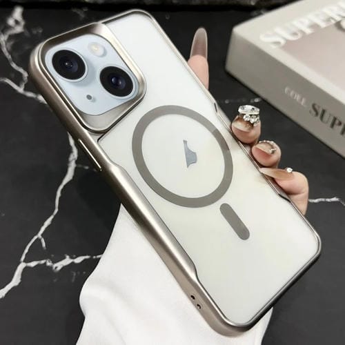 For iPhone 15 Blade Electroplating Frosted MagSafe Magnetic Phone Case(Gold)