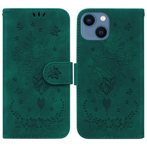 Funda para iPhone 15 Butterfly Rose Cuero En Relieve (Verde)