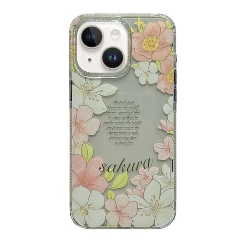 For iPhone 15 Crystal Ice Cooling Shockproof TPU Phone Case (Pink Flower)