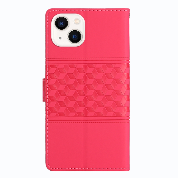 Funda para iPhone 15 Diamond Embossed Skin Feel Leather Phone Case (Rojo)