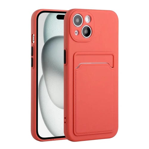 Funda para Teléfono iPhone 15 TPU Ranura para Tarjeta a Prueba de Golpes (Rojo Ciruela)