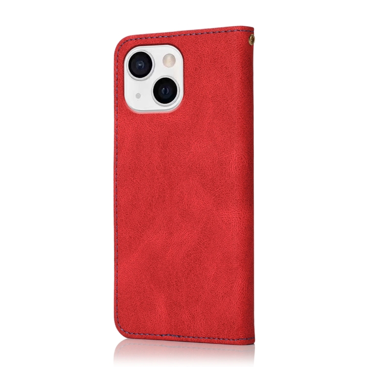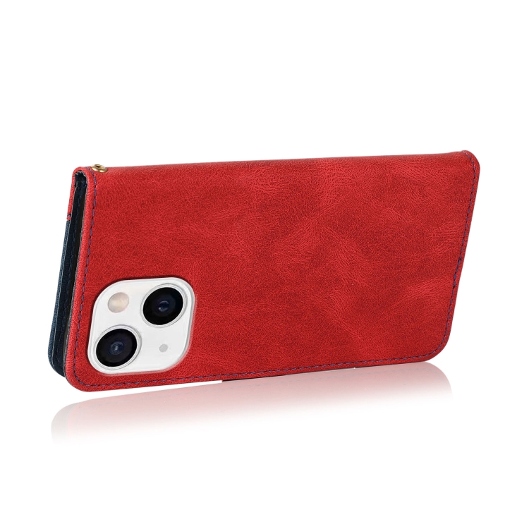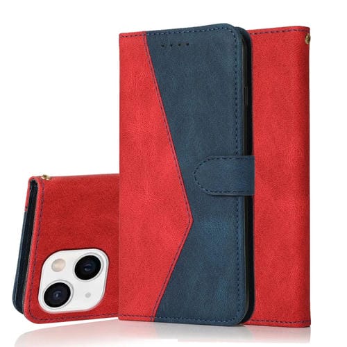 Estuche para Teléfono iPhone 15 Cuero Costuras Dos Colores (Rojo Azul)
