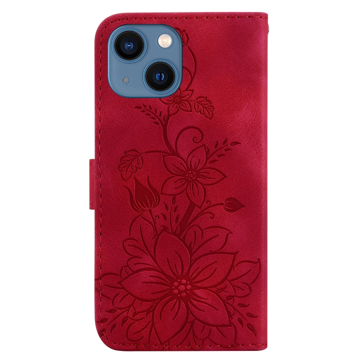 Funda de Cuero para iPhone 15 con Relieve Lily (Rojo)