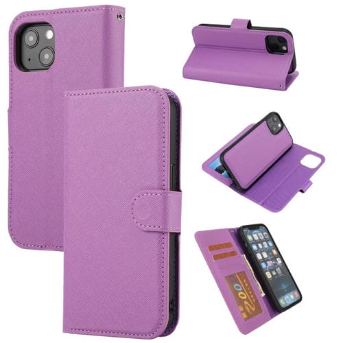 For iPhone 15 Detachable Horizontal Flip PU Leather Case with Cross Texture (Purple)