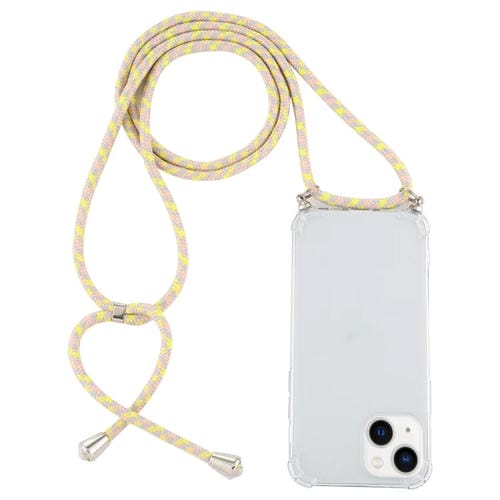 Funda TPU para iPhone 15 Transparente a Prueba de Golpes Cuatro Esquinas con Cordón (Gris Amarillo)