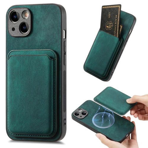 Funda Magnética para iPhone 15 con Bolsa de Tarjeta de Cuero Retro (Verde)